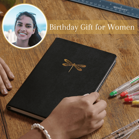 Dotted Journal - A5 Vegan Leather Notebook, 192 Archival-Quality Pages, QuillEase Bleed-Free Paper, Inner Pocket & Bookmark, Ideal for Bullet Journaling - Black Dragonfly