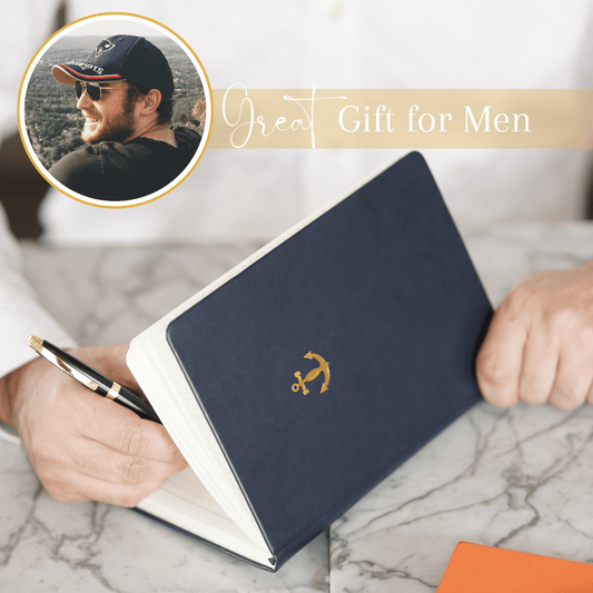 Lined Journal - A5 Vegan Leather Notebook, 192 Archival-Quality Pages, QuillEase Bleed-Free Paper, Inner Pocket & Bookmark, Ideal for Journaling - Navy Anchor