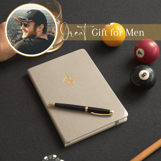 SETTINI® Lined Journal - Compass Journal for Writing Gift Set - Hardcover Vegan Leather, Includes Luxury Pen in a Unique Pen Holder, 192 Pages, 6 x 8.5 inches, Birthday Gifts for Men