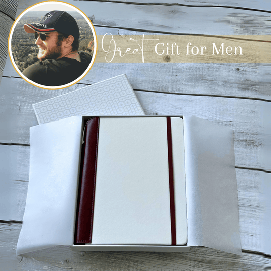 SETTINI® Lined Journal - Modern White Journal for Writing Gift Set - Hardcover Vegan Leather, Includes Luxury Pen in a Unique Pen Holder, 192 Pages, 6 x 8.5 inches, Birthday Gifts